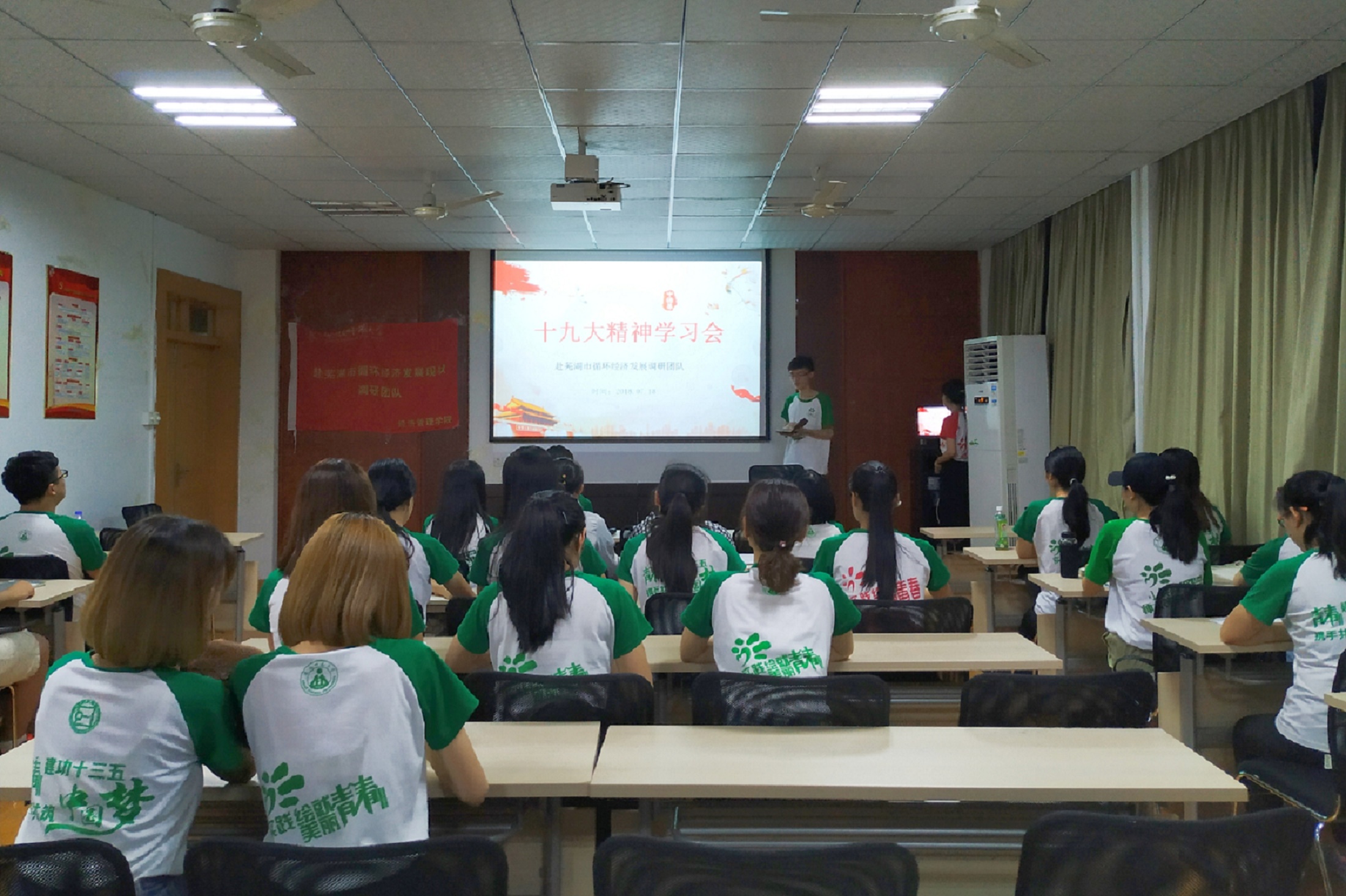 (本网讯 金芳)新思想引领新时代,新时代呼唤新作为。为更好的贯彻学习十九大精神,让团队成员深刻领会十九大报告内容的内涵,把思想和行动统一到十九大精神上来,做到不忘初心,牢记使命,奋力走好新时代的长征路。2018年7月20日,经管院赴芜湖市循环经济发展现状调研团队在行政楼党员电教化中心展开了以“不忘初心牢记使命,宣传贯彻十九大精神”为主题的团日活动。