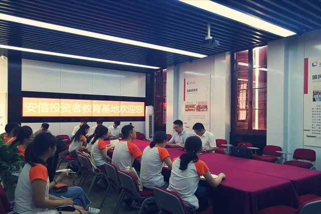 队员们此次调研的第二站是安信证券公司。接待人员首先带领队员们进行了简单的参观,然后介绍了公司发展历史,主要经营业务等一系列基本信息。随后的座谈会中,公司的负责人与队员们进行了深度的沟通。面对公司负责人,队员们都纷纷抛出困扰已久的五花八门的问题。“我们本科四年所学习的专业知识能否帮助我们在职场站稳脚跟?”,“现在考研成为了大多数人的选择,研究生和本科生在职场上的上升空间差距有多大?”,“我们在本科四年的学习中有哪些必考的证?除了理论的学习之外,如何才能更紧贴社会?”对此,大家都得到了认真的解答。在当前复杂的国内外经济形势下,金融行业需要的是复合型人才,具备扎实的专业素养,对市场保持高度敏感,更要具备强大的心理素质,有承受挫折的能力。