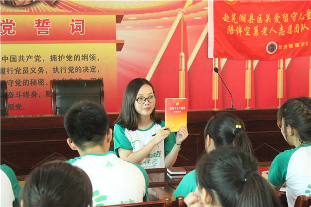 本网讯(m88官网 文/范梦丽 图/周浩宇)2018年7月18日星期三,为了更好的学习党的十九次全国代表大会会议精神、牢牢跟紧党中央的步伐,新雷锋青春志愿者协会赴繁昌关爱留守儿童,陪伴空巢老人志愿团队就“十九大”会议精神进行集中学习。