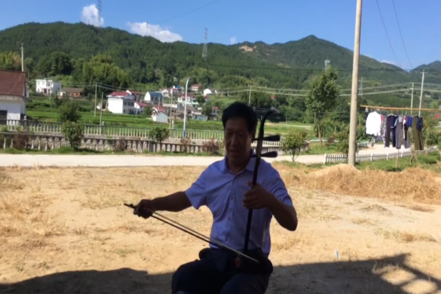 阳光再强,也抵挡不了志愿者们的热情。在走访过程中,志愿者们遇到了很多困难。由于山路曲折,马路多在施工,当地民居又比较分散,志愿者们耗费了很大精力去寻访人家。当地的民风很是淳朴,很多人出于害羞的原因,担心自己唱不好,不愿意放声歌唱。但是村民们都很热情,他们为志愿者们指了路,七拐八拐,志愿者们终于来到了大家所推荐的储大爷的家中,储大爷为大家拉了一段精彩的二胡。
