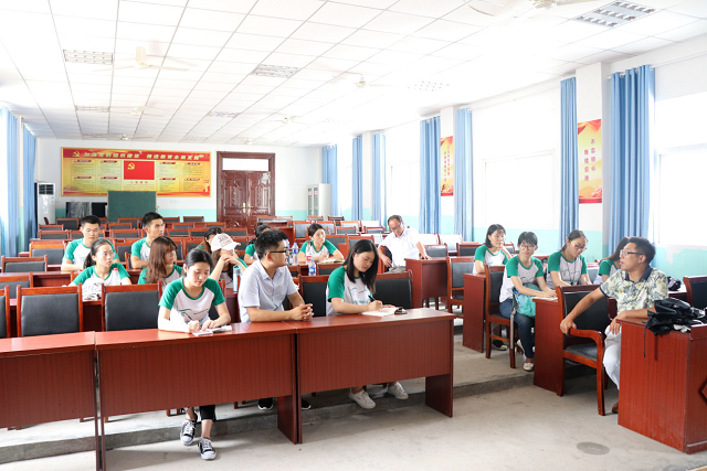 m88官网赴潜山县“青柠”共产主义青年营暑期社会实践活动团队塔畈乡支队全体队员于7月16日中午到达安庆市潜山县塔畈乡。这支年轻的支教队伍随后便在塔畈中心小学新媒体活动室与该校董事长周洪波展开了一场关于乡村支教的交谈会。