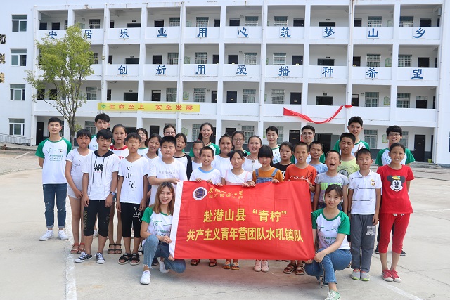 在7月17日的上午,赴水吼镇支教的同学们早早的来到水吼中心小学布置教室和会议室,并在教学楼前留下了第一张团队集体照。