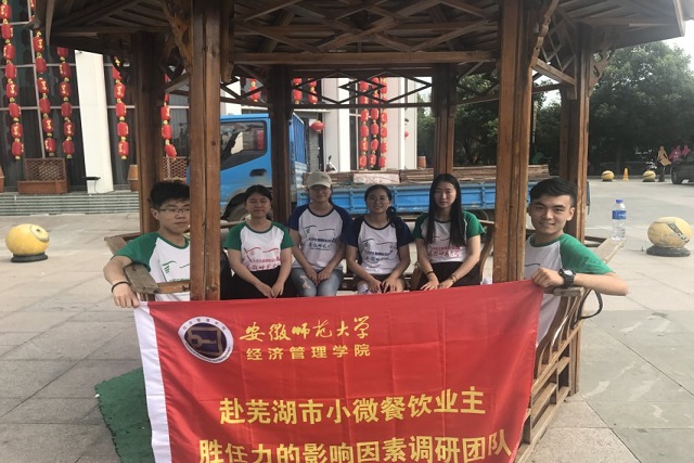 本网讯(m88官网 王钦慧)7月17日,时值夏日三伏第一天,m88官方网站登录地址m88官网调研芜湖市餐饮业主胜任力的影响因素的暑期社会实践活动前往凤凰街,在凤凰街对餐饮业业主进行全方位、深层次的调研。在餐饮业业主普遍是男性的情况之下,一位年轻的女性餐饮业业主吸引了我们的注意。