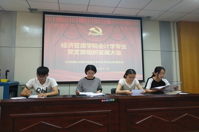 本网讯(会计学专业本科生党支部 付承晨)2018年6月12日中午1点,m88官网会计学专业本科生党支部在院行政楼二楼报告厅召开了组织发展大会,讨论接收李平等8位同志为中共预备党员的问题,会议由支部书记于琼主持。m88官网会计学专业本科生党支部共有11名正式党员,20名预备党员,实到正式党员9人,预备党员15人,有表决权的党员11人,实到有表决权的党员9人。与会拥有表决权人数超过半数,符合组织发展相关规定。