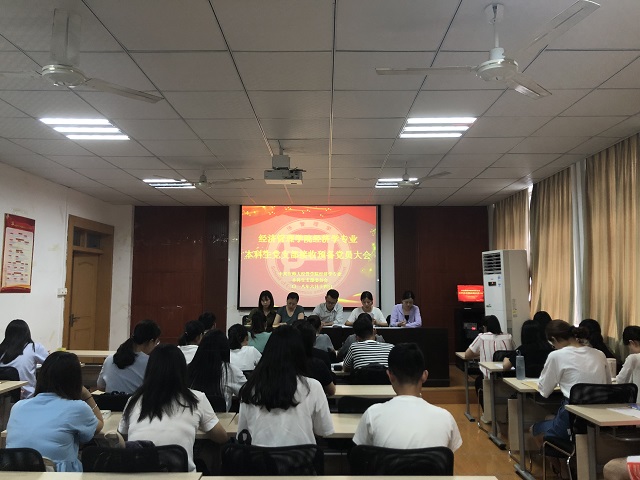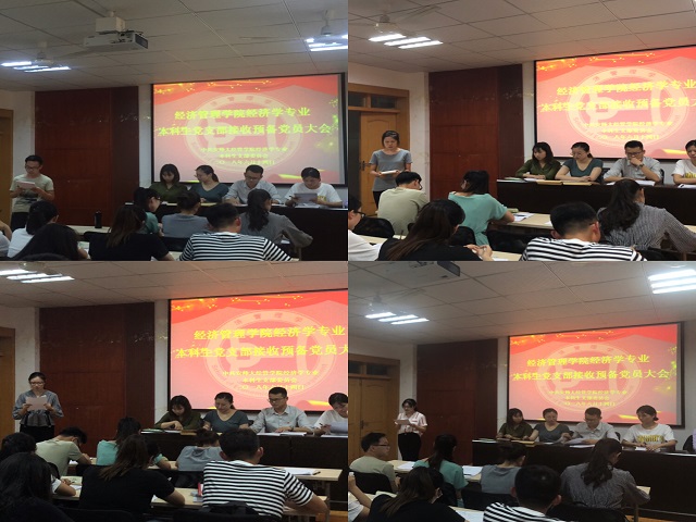 【经济学专业本科生党支部 文/胡文玲 图/张玥萌】6月14日下午,m88官网经济学专业本科生支部接收预备党员大会,在公司行政楼一楼党员电教中心如期举行。甘伟、吴庭霜等5名正式党员,江涛、石苗苗等13名预备党员,罗余银等6名发展对象和10名入党积极分子参加了会议,会议讨论接收罗余银等6名同志为中共预备党员的相关事宜,会议由支部书记甘伟老师主持。