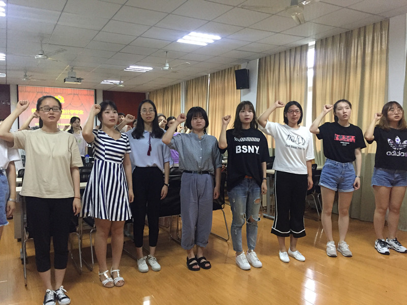 会议最后,党员同志们在支部书记于琼的带领下举起右手,握紧拳头,庄严宣誓。新转正党员2015级会计学专业仇娜同学说到: “能够加入中国共产党我感到无比自豪,为了践行誓言,我要继续虚心学习,帮助他人,不断提高自己的党性修养。”