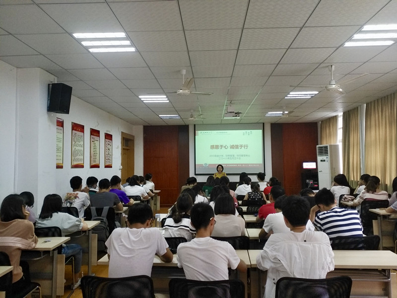 本网讯(2015级会计学 付承晨)为增强员工诚信还贷意识、责任意识和感恩意识,进一步做好国家助学贷款工作,2015级会计学、财务管理和物流管理专业于5月30日午1点在行政楼一楼党电中心开展征信教育主题教育活动,本次活动由辅导员于琼主持,三个专业国家助学贷款和国家助学金的受助同学全体参会。