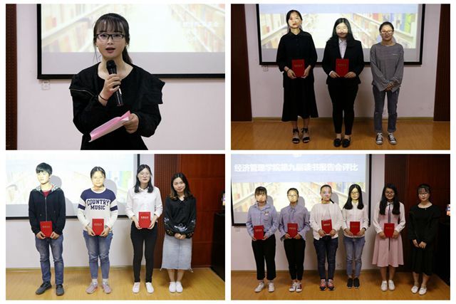 经过班级遴选,共有10名同学进入复赛,参加此次评选汇报。参与者通过PPT演示汇报形式,在限定的时间内讲述书的主要内容和自己的所思所感。“睁开蒙昧的双眼,我们一起看见。”16级财务管理程妍在细读文本后,感动于《看见》一书中对生命的尊重,对真实社会的刻画。“为天上的月亮神魂颠倒,对脚下的六便士视而不见。”16级财务管理郑欣嘉在《月亮与六便士》中感悟人生,做自己最想做的事,过自己想过的生活,心平气和,去寻找真正有价值的生活。同一本书,不同的阅读方法,从不同的角度出发,所思所感便会有所不同。红楼一梦,千年未醒。作为四大名著之一的《红楼梦》,吸引了很多人去阅读经典,品味百态人生。17级投资学的赵鑫宇从大处落笔,抓住几条主线,从儿女情长讲到封建家族的没落,将贾家百年兴衰史向观众娓娓道来。16级投资学的赵付影则从黛玉着手,从外貌、性格、经济状况、爱情观等方面分析人物性格,以此映射整个大观园的发展形势。分享读书心得的时候,参赛选手们或自信开朗、或拘谨羞涩、或慷慨激昂、或抑扬顿挫,给在场的观众们带来一场心灵的文化盛宴。现场气氛热烈,掌声频发。