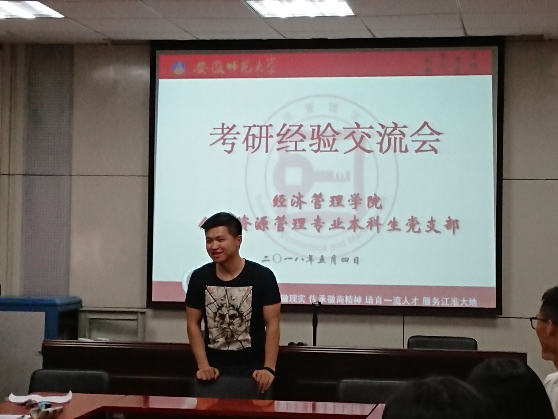 (本网讯 人力资源管理专业本科生党支部)2018年5月4日晚,m88官网人力资源管理专业本科生党支部“三个一”职业导航第一次活动在公司二楼报告厅举办,支部党员、15、16级入党积极分子和有考研意向的人管专业员工到场参与,支部副书记张志平主持座谈会,支部书记吴敬之到场指导。