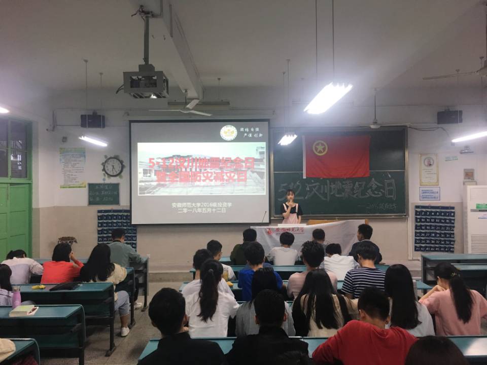 (本班讯)2016级投资学于5月12日下午在2030204举行了5·12汶川地震日活动。这次活动共有三项内容。第一,同学们观看汶川地震纪念视频。第二,每个团小组的同学谈一谈自己对于汶川地震十年来的看法。第三,团支部书记总结本次活动。