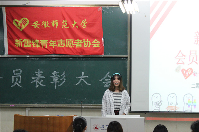 活动伊始,主持人致辞让大家了解到本次活动的背景、目的和意义,并为大家介绍了出席本次活动的会长团成员。简单的开场后,新雷锋青年志愿者协会会长钟杰与会员和理事们分享了自己的志愿经历,她提到经过近两个学期的努力,会员与理事们积极参加新雷锋志愿服务活动,如图书馆清理、澛港关爱老人、牌楼支教、十二五义卖、新雷锋故事汇,大家在活动的过程中都收获了成长与感动。做志愿容易但是坚持做志愿却不是一件易事,这也是协会举行这次会员表彰大会的意义之所在。接下来是一名广告学专业的会员代表何小蝶进行发言,她说自己可能没有参加过所有的新雷锋志愿服务活动,但是目前所有参加的活动都让她收获匪浅,这些活动不仅丰富了她的生活,也让她真正体会到了帮助他人的快乐和满足感。