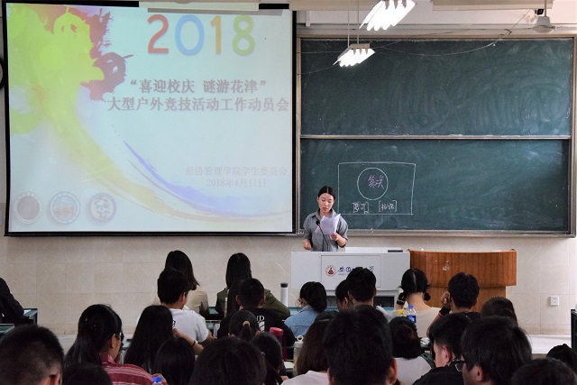 据悉,本次活动从筹备至今已一月有余,而此次动员会中详细的工作布置让员工会全体成员对活动有了更加清晰的认识和整体把握,使活动的进行可以更加顺利。“十年磨一剑,今朝且试锋”,2018“喜迎校庆,谜游花津”大型户外竞技活动的相关工作仍在准备之中。