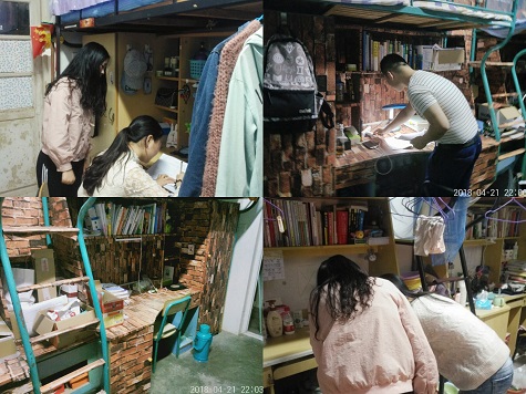 (本网讯 文/侯菀茹 图/张然)为了加强员工宿舍管理,规范员工行为,排除寝室安全隐患,于2018年4月20日晚,2016级会计班安全委员与其他几位班委共同进行了本班级4月份的寝室安全检查。
