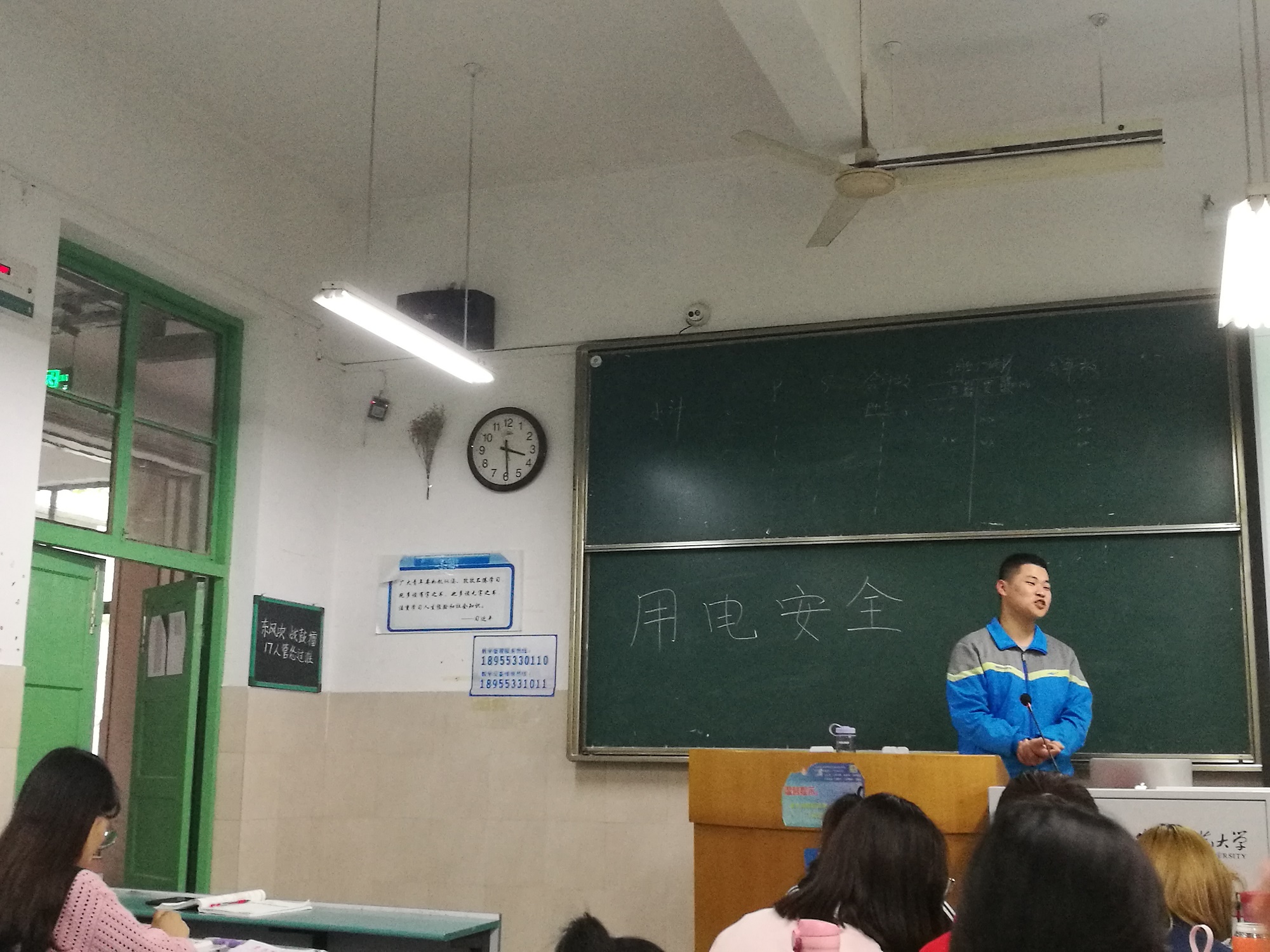 继走访检查之后,安全委员于2018年4月23日又在班级里开了个简短的以“用电安全”为主题的主题班会,班会上安全委员再三着重强调了寝室用电安全问题,为引起同学们的高度警惕性,安全委员还举了几例往年公司发生的由于不规范用电导致的惨案,为了让同学们以此为戒,规范用电。