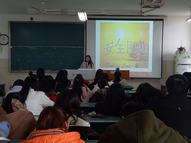 随后,安全委员何蒙蒙又再次强调了安全用电注意事项和面对用电故障的相应方法。一直以来,寝室用电的安全直接关系到一个校园的平安与和谐,甚至关系到员工的生命与财产安全。然而大多数员工却很少将此放在心上,因此大公司园,事故频发,尤其是在人口密度比较集中的地方,如教学楼、寝室常因忽视日常防范而引发火灾。根据相关资料显示,校园火灾的发生大多是电器过度使用和长时间充电、乱借乱拉电线等不规范行为所导致的。因此,在此次班会上何蒙蒙多次强调违规电器的禁用和普通电器的正确使用并向同学们介绍了许多电器的正确使用方法。除此之外,为加深同学们的印象,安全委员特找来各地高校火灾典型案例,生动地向同学们展示了校园火灾的严重性,让同学们充分了解到了安全意识缺乏所带来的后果。