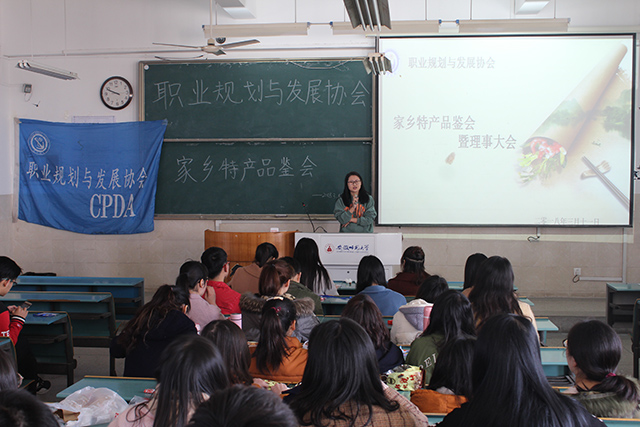 #喜迎校庆九十周年,做新时代经管人#(本网讯 文/沈琳)由m88官方网站登录地址职业规划与发展协会举办的家乡特产品鉴会于三月十一日上午九点在行知楼2010503正式开始,出席本次活动的有协会会长,会长助理,部长团和理事们。