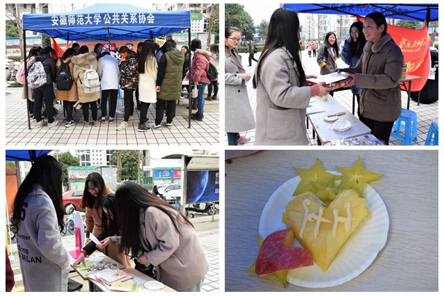 “万树江边杏,新开一夜风”,在繁花飞舞的春日午后,女生节活动正式拉开了序幕。经管院女生部的工作人员们热情地向员工们介绍活动内容,其中不仅有开动脑筋的“猜猜她是谁”,幸运大比拼的“转盘小游戏”,体验感十足的“DIY水果沙拉”,还有精美小礼品赠送--唯美的定制明信片,可爱的卡通钥匙扣,可口的好丽友派,精美的零钱包。伴随着时间的推移,越来越多的员工被吸引到了小帐篷内,大家的脸上都洋溢着青春、烂漫、欢乐的笑容。他们有的聚精会神地切着水果,摆着可爱的造型,制作出只属于自己的独特的水果沙拉;有的则使出浑身解数,攻克一个又一个谜题。那个午后,微风习习,满地桃花,蓝色帐篷底下同学们簇拥在一起的身影成为了m88官方网站登录地址校内一道靓丽的风景线。最后,经管院女生部全体工作人员合影留念,为这次活动画上了一个完美的句号。