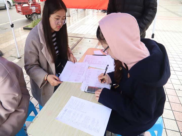 报名活动的第一天,老员工创业协会的工作人员早早地到达公司一、二食堂对场地进行布置。不久之后,同学们便陆续赶来,一部分人提前了解了大赛的内容,来到地点直接选择报名;还有一部分感兴趣的人在工作人员的耐心讲解后,明白了赛事规则并积极组队报名。第二天和第三天,天空虽然飘起了小雨,但恶劣的天气依然阻挡不了同学们前往报名的脚步,浇不灭同学们参赛的蓬勃热情,每一位报名的参赛成员都对即将展开的赛事充满希望与期待。在创业协会各工作成员积极配合、耐心解答、努力宣传下,报名顺利举行,“创青春”老员工创业大赛的报名活动得到了一个圆满的结果。