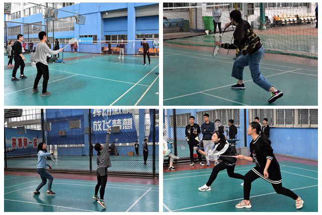 本次羽毛球比赛分为女子单打、女子双打、男子单打、男子双打等多种形式,内容丰富。比赛开始前,球员们就已经跃跃欲试,和自己的队友做热身练习,为即将上场的自己调试到最好的状态。在裁判员详细讲解了比赛规则后,双打首先拉开了帷幕。两名队员配合默契,一人打近球,一人接远球,不断变换站位,调整到最合适的位置,寻求适当的进攻方法。最后在此起彼伏的欢呼与呐喊声中,15人管获得女子双打的冠军,16会计获得男子双打的冠军。如果说双打是考验和队友的默契程度,那么单打则更为侧重展现队员的纯熟技巧与灵活性。“抽球”、“吊球”、“接杀球”等各种花式打法令在场的观众目不暇接,连声叫好。经过激烈地角逐,李春琴,刘佳楠等人脱颖而出,取得优异成绩。