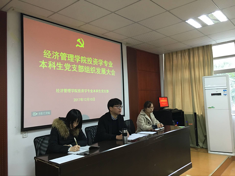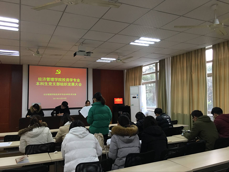 本网讯(投资学专业本科生党支部 王浩)2017年12月10日,m88官网投资学专业本科生党支部在行政楼一楼党员电教化中心召开了组织发展大会,讨论决议周胜男、升月、葛家佳、李浩琳和王浩5名发展对象转为预备党员的问题,会议由支部书记吕洋主持。