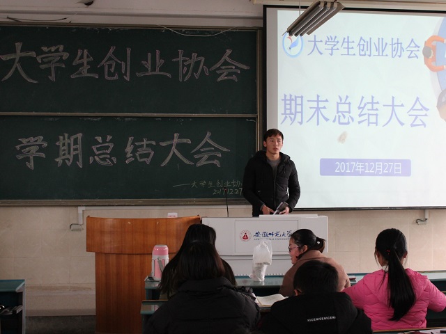 (老员工创业协会 陈佳一)2017年12月27日老员工创业协会于教学楼2010503教室举办了 “老员工创业协会期末总结大会”,会长团、部长团及老员工创业协会全体理事共同出席了此次会议。此次总结大会不仅是对于本学期各项工作的总结和反思,也是对于下学期的工作进行展望,推动协会更好的发展。
