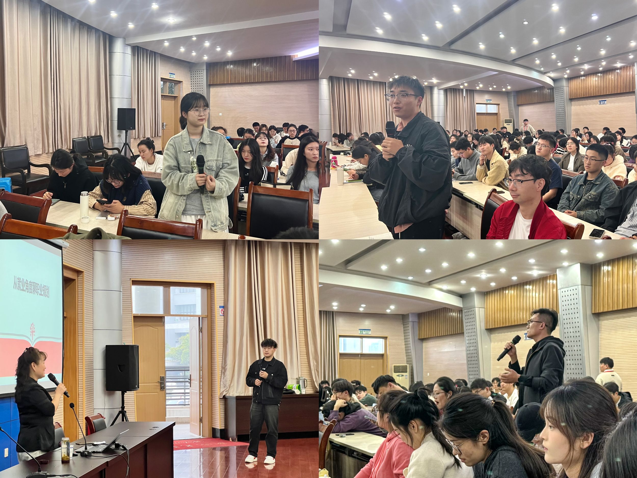 在互动交流环节,同学们踊跃发言,围绕职业定位、简历制作和面试技巧等问题展开提问。朱华老师耐心倾听并详细解答了每一个问题,分享了许多切实可行的建议,并鼓励同学们客观分析自己的核心潜能,保持开放心态,与不确定性共舞,通过自身的奋斗和拼搏去实现自己的梦想。