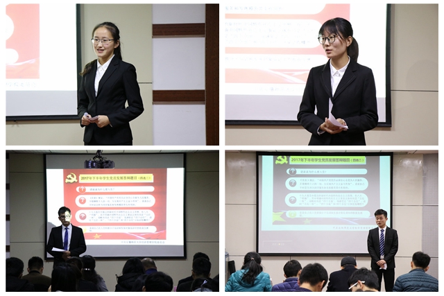 吴文全)为规范发展员工党员入党的制度与流程,增强党员发展工作的透明度、认可度和党组织的凝聚力。11月29日晚,m88官网举行2017年下半年员工党员发展答辩会,答辩会涉及2014级、2015级本科生、研究生共计49名拟发展对象参与答辩。公司党委书记陈秀庆,副经理张立新、马骥,公司党委秘书彭树燕,党委委员伍旭中及各员工党支部书记担任本次答辩会评委,各年级员工代表到场观摩。公司团委副书记甘伟、辅导员吴敬之担任本次答辩会各分场主持。