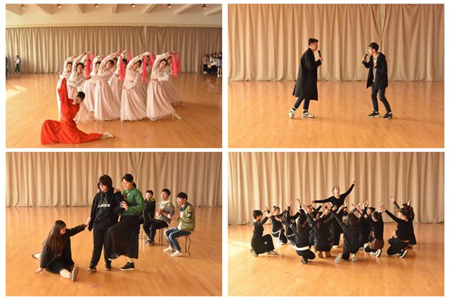 下午13点30分,联排正式开始。伴随着欢快愉悦的音乐,院员工会带来的开场舞蹈《爱乐之城》正式亮相。舞蹈演员们用青春洋溢的步伐拉开了本次联排的序幕。第一篇章第一个出场的节目是经济学会和16级经济学的歌伴舞《燕归巢》,两位主唱深情的演唱和演员们优美的舞姿把评审们带入了一个美秒的歌舞世界。接下来上场的节目是小品《子孙满堂》,来自新雷锋青年志愿者协会的演员们优秀的表演赋予了小品鲜活的灵魂。之后上场的《Love Yourself》和《不忘初心》虽然都是歌伴舞类节目,但两者类型却截然不同。前者是轻松欢快的嘉年华,后者则是真挚深情的歌唱祖国,两者的舞台效果都十分出色,难分伯仲。第二篇章在一个大型歌曲串烧下拉开帷幕,五首歌曲在不同歌手的演绎下浑然一体,节目的完整性非常高。接下来上场的舞蹈类节目《灼灼芳华》由院舞蹈队带来,专业的舞蹈演员用稳健的台风和舞步让现场人员大饱眼福。伴随着古色古香的舞台效果和背景音乐,16经济学和17物流管理带来的《中华传统文化诵》正式亮相,这个独具中国传统文化特色的朗诵节目用丰富的场景设计给大家展示了一副动人的画卷。歌伴舞《Skewer jazz》随后欢快登场,17物流管理和17人力资源管理的同学们热情洋溢,表现力十足。而由16物流管理带来的《再相见》则给大家献上了温情和感动。