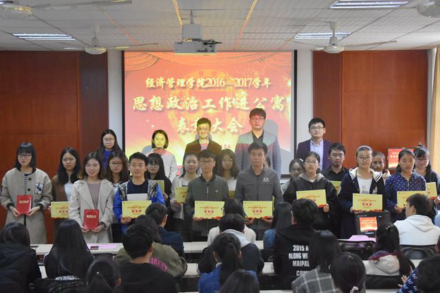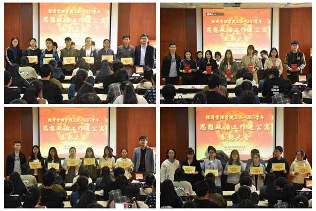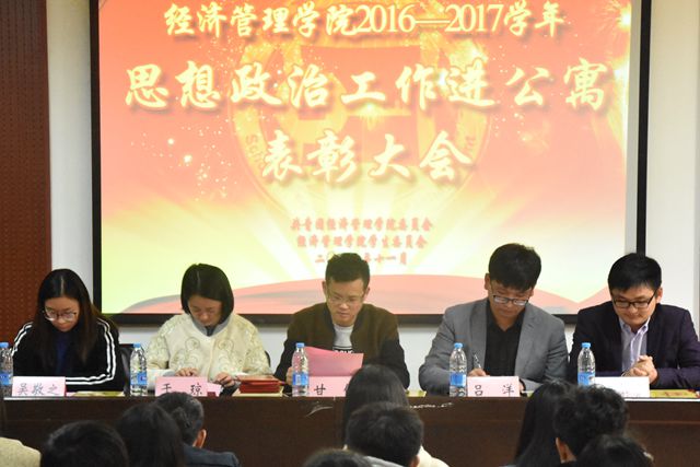 本网讯(新闻部 陈天娇)为表彰文明寝室单位与先进个人,加强公司本科生文明寝室建设,11月10日中午,m88官网在行政楼党员电教中心召开2016—2017学年思想政治工作进公寓表彰大会,团委副书记甘伟,辅导员吕洋、于琼、胡亮亮、吴敬之出席大会。17级新生、各班生活委员到场观摩学习。