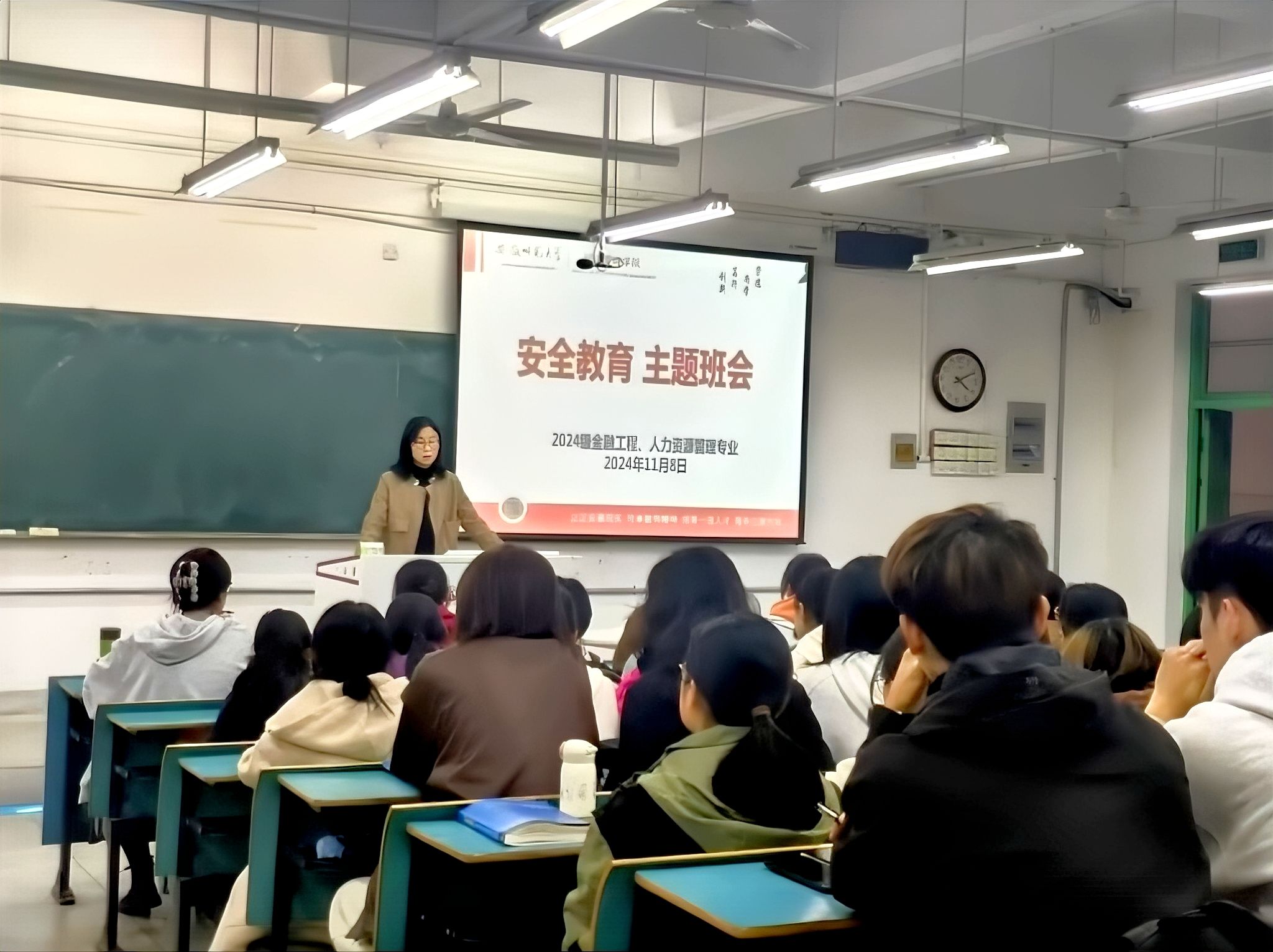 11月11日,2024级金融工程、人力资源管理专业开展安全教育主题班会,班会由辅导员吴敬之老师主持,2024级金融工程、人力资源管理专业全体同学参加。