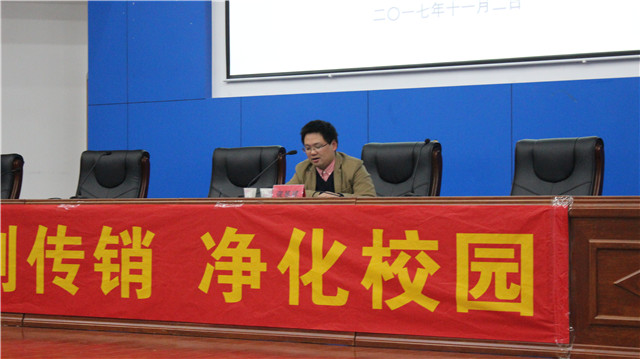 仪式开始前,保卫处处长孙成岗介绍了参与讲座的嘉宾,点明传销的危害及其隐蔽性,强调了这次讲座对人身安全的重要性。随后工商局打击传销办公室张英祥主任表示各大高校已多次开展各种打击传销活动,并印制宣传单页,近几年也加大了传销打击力度。虽然在反传销领域取得了一定成效,全市警情下降,但随着互联网技术的进步,传销组织通过微信等社交软件,扩大了传播范围,反传销行动仍然任重道远。之后他介绍了传销发展历程和传销洗脑揭秘。不久之前,山东大学毕业生李文星为赚钱补贴家用,误入传销组织,几天后警方在小水塘里发现了他的尸体,在这多姿多彩的年华里,他因传销失去了宝贵的生命,人们在为此扼腕的同时,也在思考着如何保护自己。