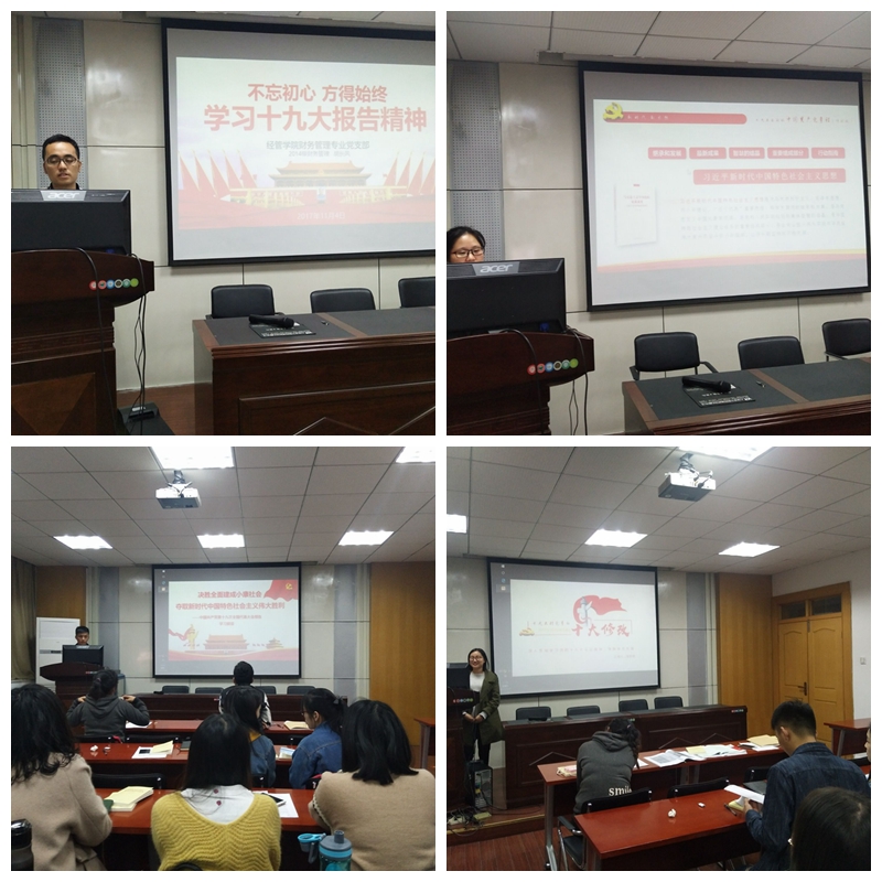 (本网讯 财务管理本科生党支部 张欢欢)为了进一步学习贯彻十九大精神,深刻领会“新时代”的丰富内涵,2017年11月5日晚19:40,m88官网财务管理专业本科生党支部召开专题学习交流会,就十九大报告支部成员开展了一次深刻的学习研讨。