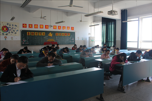 本网讯(文/刘龙婷 图/李敏雪)旨在让广大同学亲身感受求职的实况和气氛,锻炼自我推销的能力,积累应聘经验,作好双向选择所需的知识与能力两方面的准备,增强自信心和全面认识自我,并让新生提高就业意识、增强就业危机感、意识到提前职业规划的重要性,职业规划与发展协会于2017年11月5日上午8:00到9:00在教学楼20个考场进行第六届华图杯职场之星面试大赛的笔试。