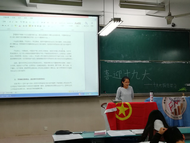 本网讯(2017级物流管理 郭梦楠) 2017年10月18日,中国共产党第十九次全国代表大会在北京人民大会堂胜利召开,举世瞩目。“青年兴则国家兴,青年强则国家强”,为响应习近平总书记对青年的深情号召,深入学习十九大会议的内容,贯彻党的十九大精神,近期,2017级财管、物流、人管三个班级相继开展了 “十九大报告”主题学习会,会议均由班级团支书主讲,班级全体同学参加了学习会。