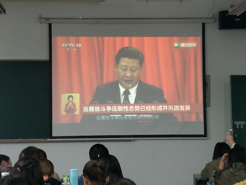 (本网讯 2016级财务管理 张丹薇 高宇)为贯彻落实十九大精神,学习习近平总书记的讲话,2016级财务管理全体同学们于2017年11月3日下午观看了十九大开幕式。