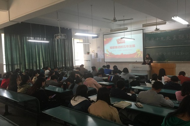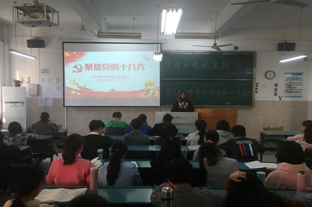 应着时代与国家的号召,中国共产党第十九次全国代表大会于2017年10月24日在北京圆满召开,为了让2015级投资学的同学们更好的了解十九大内容,贯彻十九大精神,班级以主题班会的形式,在两位预备党员同学的带领下,共同学习十九大报告。班会上,钟杰同学分别从十九大重要常识、十大关键词两方面解读了十九大报告,并重点强调了十九大上我党所作出的创新创举,结合我党走过的历程,从过去的旧时代到现在的新时代,从过去的富起来到现在的强起来,新的主要矛盾,新的指导思想等方面,全面聚焦十九大;最后在听完张弟同学解读十九大关于“青春梦想”这个关键词后,同学们也积极的发表了自己对十九大的感受,其中钟杰同学就“青年兴则国家兴,青年强则国家强”这句话表达了自己的理解,“当代社会,作为青年的我们应该主动去肩负国家兴旺的大任,树立起理想信念,从学习开始,敢于吃苦、善于开拓,用奋斗为青春护航,用努力为梦想加冕”。