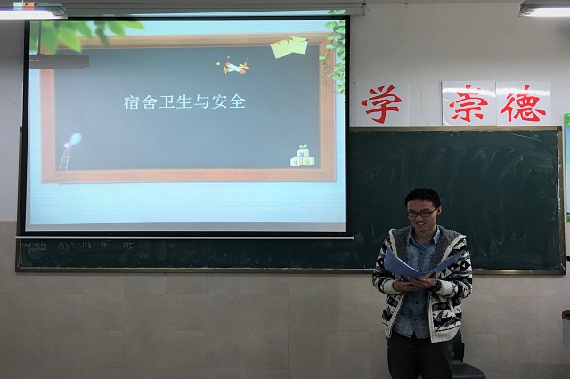 最后生活委员唐群和安全委员潘黄安向大家提出对于寝室卫生和安全的几点要求:一、不得晚归不归,遇特殊情况必须向辅导员请假说明情况;二、严格遵守公司规定的作息时间,现在公司已经启用了冬季作息时间表和断电断网断网制度,希望大家养成良好的生活习惯,按时就寝,按时起床,无课程安排也应正常时间起床,不要睡懒觉;三、保持寝室的整洁卫生。要整理好桌面的书籍杂物与电线,不使用、不存放违禁电器,并且要养成叠被子的习惯等。