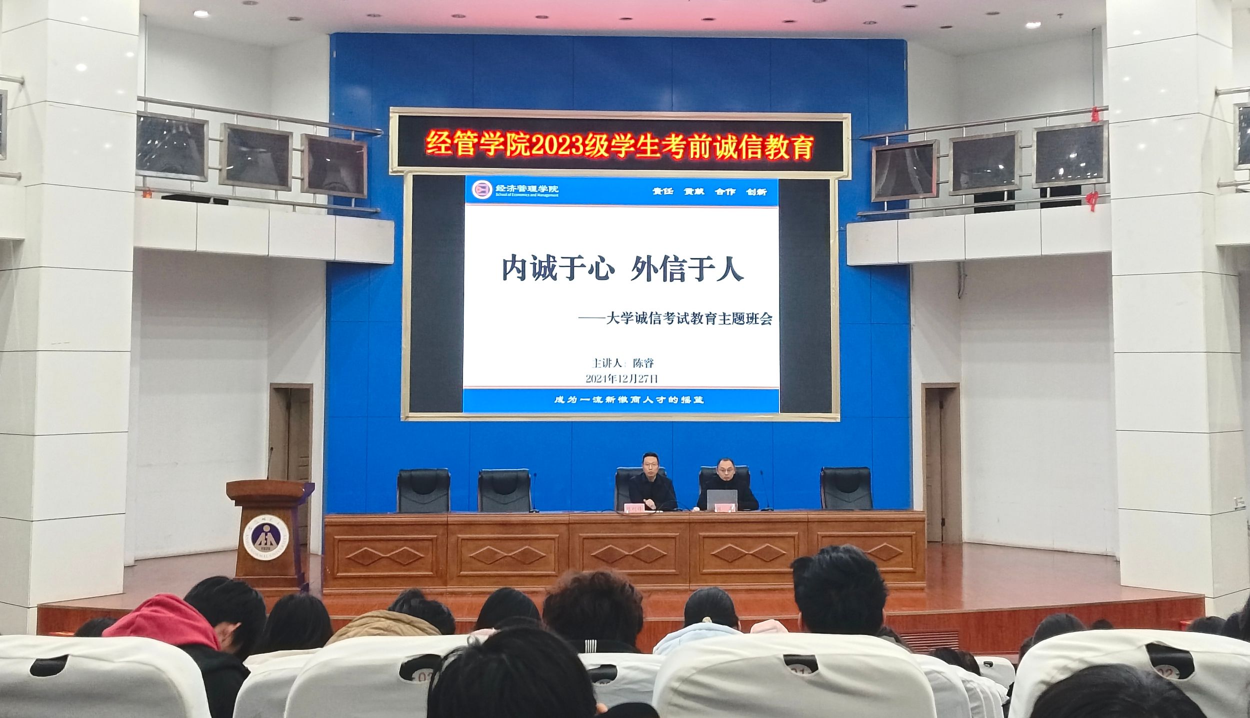 诚信是中华民族的传统美德,是中华优秀传统文化的精髓。为了在班级树立起良好的班风、学风和考风,进一步加强员工的诚信意识和责任意识,12月27日,m88官网召开2023级本科生“内诚于心,外信于人”诚信考试教育主题班会。公司党委副书记陈刚锋、辅导员陈睿以及23级本科生参加会议。