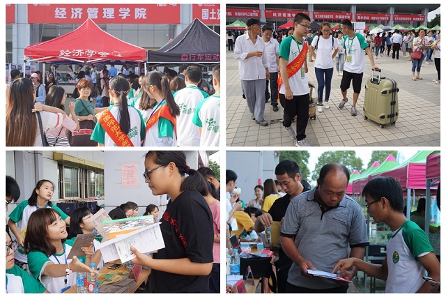 本网讯(新闻部 吴文全)九月金秋送爽,十里丹桂飘香。9月9日清晨,迎新场地内各色帐篷林立,热情激昂的音乐舞蹈点立期间。经过一个暑假的漫长等待,2017级的新同学们载着家人的嘱托和师生的期盼终于抵达校园,迎新工作也正式拉开帷幕。