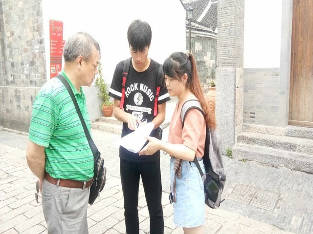 为提高调研效率,团队分为三个分队,分别前往不同的区域进行问卷调查。老门东作为景区,客流量非常大,熙熙攘攘的人群为团队的调研增加不少负担。并且街区内多为游客,很少有中老年人愿意停下脚步接受调研。为此,团队只得把目标人群转向店里的老板或者服务人员。在队员们不懈的介绍下,也有多数人愿意配合团队的工作,帮助队员们完成调研。