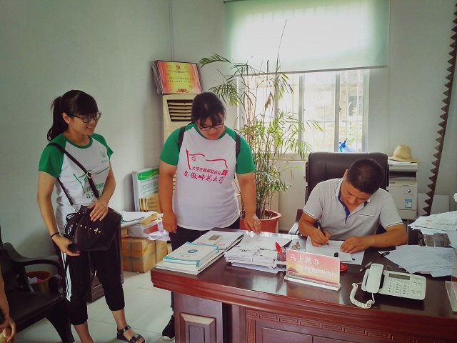 在镇政府,团队成员与白庙镇副镇长赵存才针对白庙镇整个贫困状况和扶贫状况进行了深入访谈。阜阳市临泉县白庙镇是国家重点贫困地区,白庙镇总人口共59000多人,共计17000多户,贫困人口共2034户,截至目前,脱贫比例已达50%,走在全国脱贫前列。2016年国家贫困标准为人均年收入低于3100元,2017年国家贫困标准为人均年收入低于3500元。致贫原因主要分为因病,因学,缺技术,缺劳动力等方面;争对这些问题,政府也都采取相应政策积极应对解决。政府的扶贫政策对于贫困户脱贫的帮助只是一方面,最主要的还是要靠贫困户自己的努力,不能简单依靠政府“输血”,关键要学会自己“输血”。这样通过政府政策的帮助,才能不仅让贫困户脱贫,更能致富。