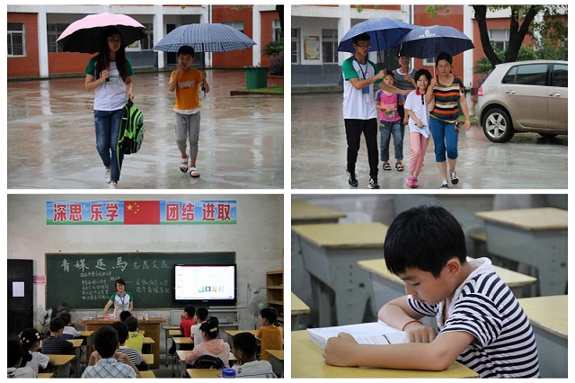 同日早上七点半,支教团队早早的来到当地黄铺中心小学进行课前准备,为了核实实际上课人数,确保员工安全,团队成员对每一位上课的员工进行打勾签到并打电话询问未到家长的原因。八点半正式上课,“接天莲叶无穷碧 映日荷花别样红”朗朗读书声在校园中回荡。“小朋友们,我是你们的英语老师,知道KFC是什么吗? 你们喜欢吃肯德基吗?”、“来跟姐姐读,姐姐有奖励哦!”课堂上,团队成员采用趣味教学的方式让员工更加积极主动的学习知识。“谁当apple 谁当banana?”、“apple蹲 apple蹲 apple蹲完banana蹲”课间,团队成员带着孩子以游戏的方式学习英语。当日下午,团队成员主要负责员工暑期作业,对于员工不懂的问题团队支教则老师耐心地解答。支教团队采用不同于公司课堂的趣味教育方式,争取以最大的能力给员工带来快乐与知识。