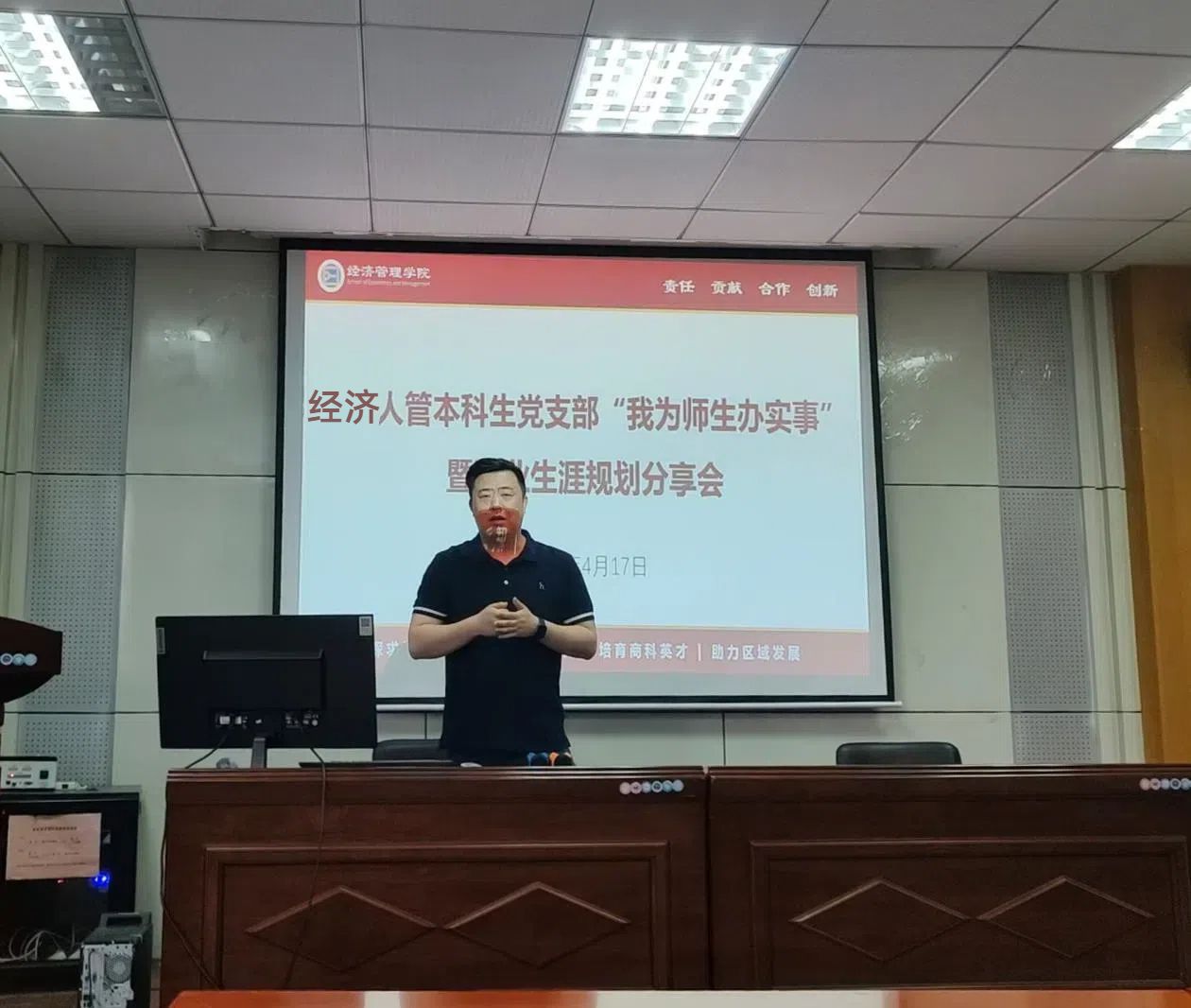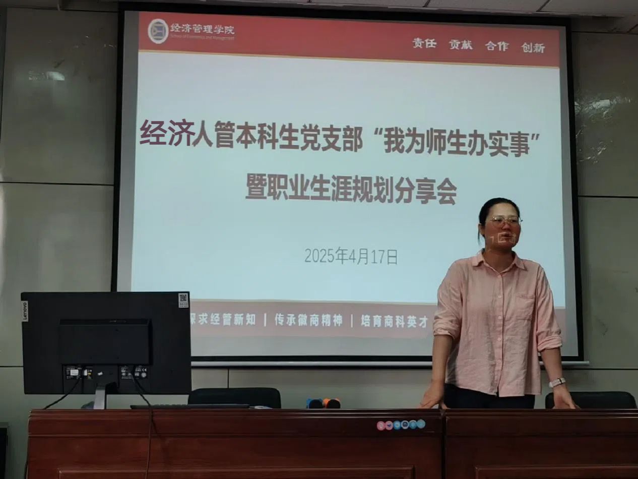 为充分发挥党员先锋模范作用,切实回应员工成长发展需求,4月17日下午,经济人管本科生党支部在m88官网二楼报告厅有开展“我为师生办实事”暨职业生涯规划分享会,会议由辅导员盛亚琴主持,人力资源管理专业系主任鲍子如应邀出席,2022级人力资源管理专业全体同学参加。