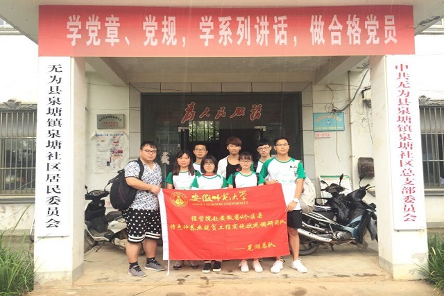本网讯(文/潘丽瑶 图/金梦涵)6月27日,经管院赴安徽省四个区县特色种养业脱贫调研团队无为分队继续开展为期7天的暑期社会实践活动。今天,团队就无为县泉塘镇特色种养业脱贫工程发展状况展开实地调研,以通过此次调研来了解其特色种养业脱贫工程现状。