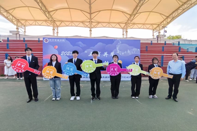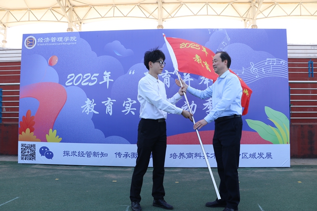 乔静为经管公司2024级“五育并举”示范创建班级授牌,并为2025年“五育并举”体美劳教育活动实践季活动授旗。