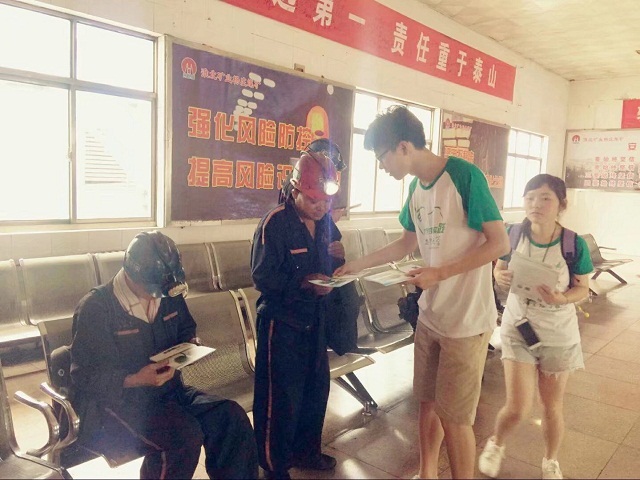 本网讯(赴淮北尘肺病调研与宣传团队 陶悦)6月30号,m88官方网站登录地址m88官网赴淮北尘肺病调研与宣传团队第二次来到杨庄煤矿,向正在工作的矿工们发放物资和宣传手册,宣讲尘肺病的相关知识。