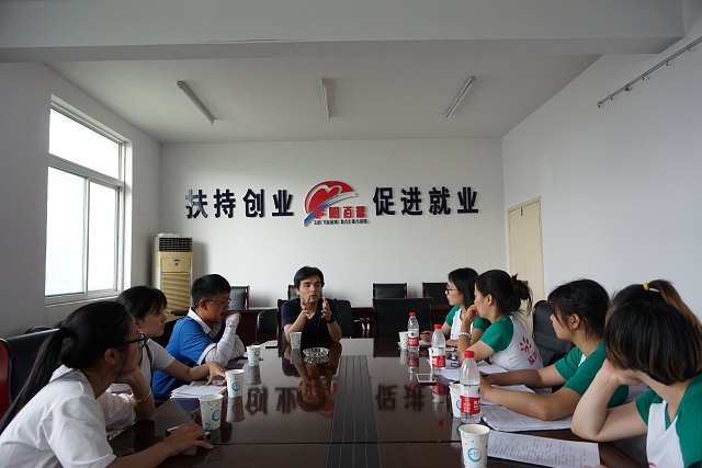 第二小分队调研的庐阳区百帮创业服务中心创建于2001年1月,是合肥市较早成立的一家非正规就业劳动组织的服务机构。多年来,庐阳百帮坚持立足社区,有序发展,积极引导、吸纳、安置下岗失业人员自谋职业、自我创业,探索出从创业培训、优惠提供创业场地、指导开业、免费登记办证、免费开取服务发票,小额贷款支持等一系列的绿色再就业通道。目前,庐阳百帮已形成以总部为中心,以三个分中心、三个再就业一条街、一个创业园为示范点,以遍布全区的百帮组织为网络的再就业体系。在调研过程中,合肥一队的队员们有幸能与百帮创业园中心的方副主任进行了面对面的交谈,方副主任热情的招待了队员们,并向队员们详细的介绍了园区,其中包括下岗失业人员创业园、民营科技创业园、老员工创业园和农名工创业园。除此之外还有孵化基地办公室和为园区企业开设的宿舍楼、食堂、浴室等等。园区内部内容丰富、设备全面、基本生活保障十分到位。