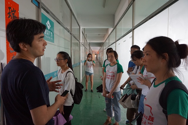 在会议室内,队员们与偶遇的安徽大学暑期调研团队一起与方副主任进行了详细的访谈。方副主任详细的指出了百帮创业园区是完全由政府扶持,不以盈利为目的的国家性创业服务平台,旨在服务创业人员,不获取任何的市场利益。方副主任还进一步的指出合肥地区现有的创客空间与北上广地区创客空间之间的区别,特以中关村的创客空间为例说明:技术人才的集中和资源的整合是决定创客空间质量的关键性因素,政府支持等外在因素只是促进发展的一方面影响因素。