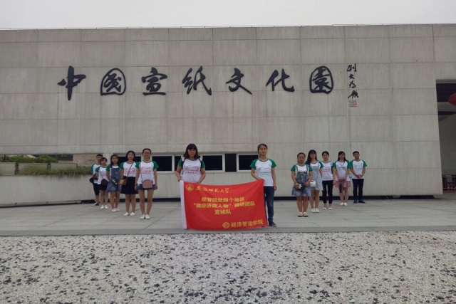 队员们于6月28日清晨正式展开了第一天的调研活动。经过一个小时的车程,团队到达了红星宣纸制造厂和宣纸文化园。在这里队员们对宣纸制造厂的主任和一些资历较老的制造工人进行了采访,并展开了问卷调查。
