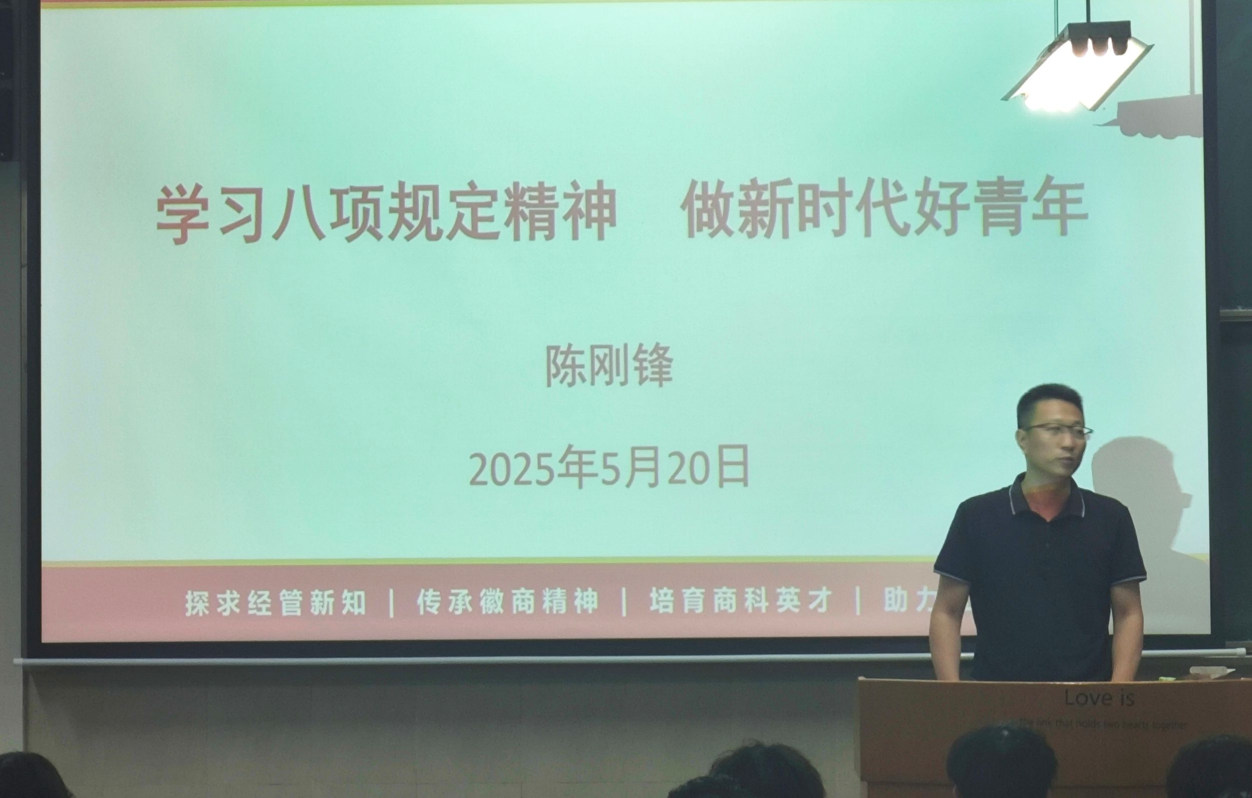 陈刚锋面向同学讲授了党课,并结合深入贯彻中央八项规定精神学习教育,对员工进行了职业生涯规划指导。他通过详实数据和典型案例,深入浅出,系统梳理了当前职业发展前景与方向,激励青年学子保持蓬勃朝气,敢于表现,勇于创新,在奋斗中彰显经管学子锐意进取的青春风采。他重点剖析了青年员工应具备的六项核心素养,即以优良品格塑造立身之本,以集体意识筑牢成长根基,以化解矛盾锤炼职场技能,以扎实知识夯实专业底蕴,以组织协调拓展发展空间,以主动参与提升实践能力。面对人工智能时代的机遇与挑战,他特别指出广大学子要树立与时俱进的职业理念,鼓励同学们先行动起来,在实践中不断提升自我。